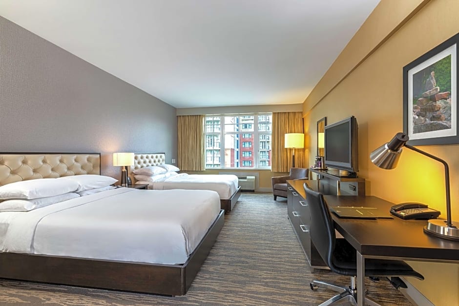 The Hilton Room-2 Queen Beds is 334 square feet and includes a queen-size bed 150-154 width and is Wheelchair-accessible.